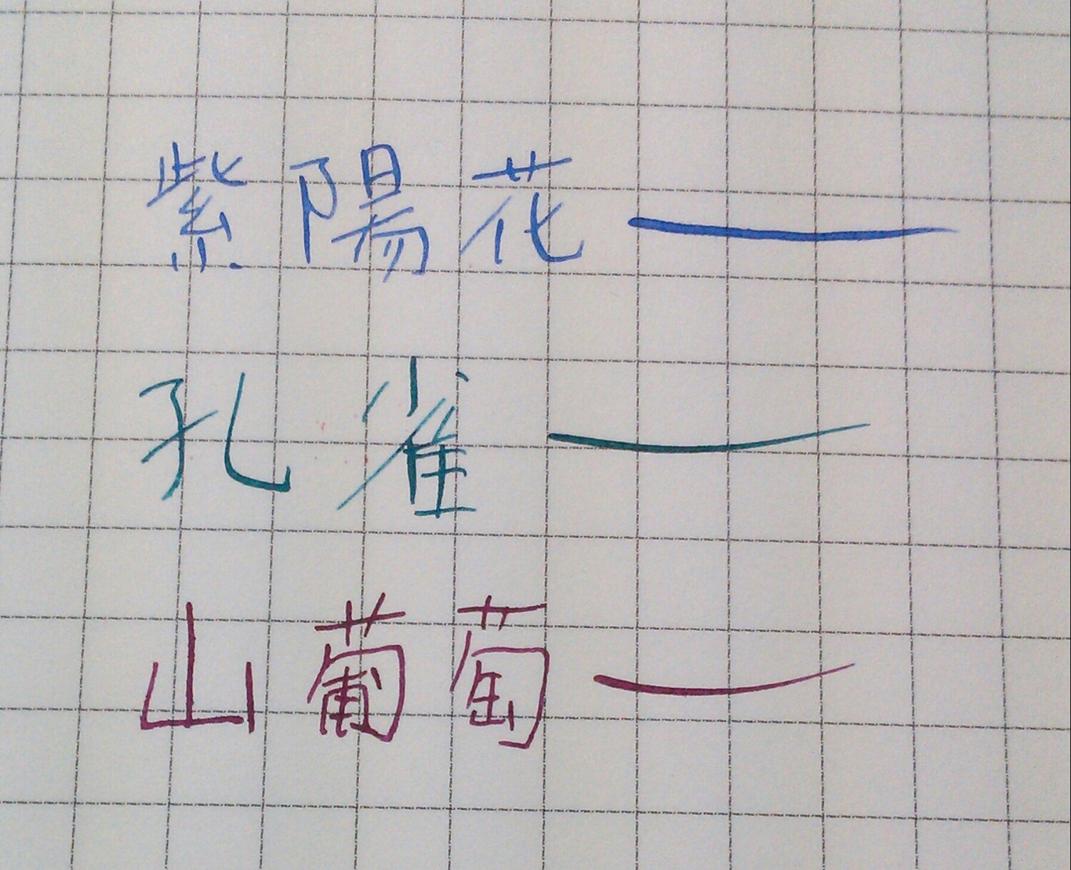 万年筆に入れる前に色が見たくてGペンで試し書きしたもの。